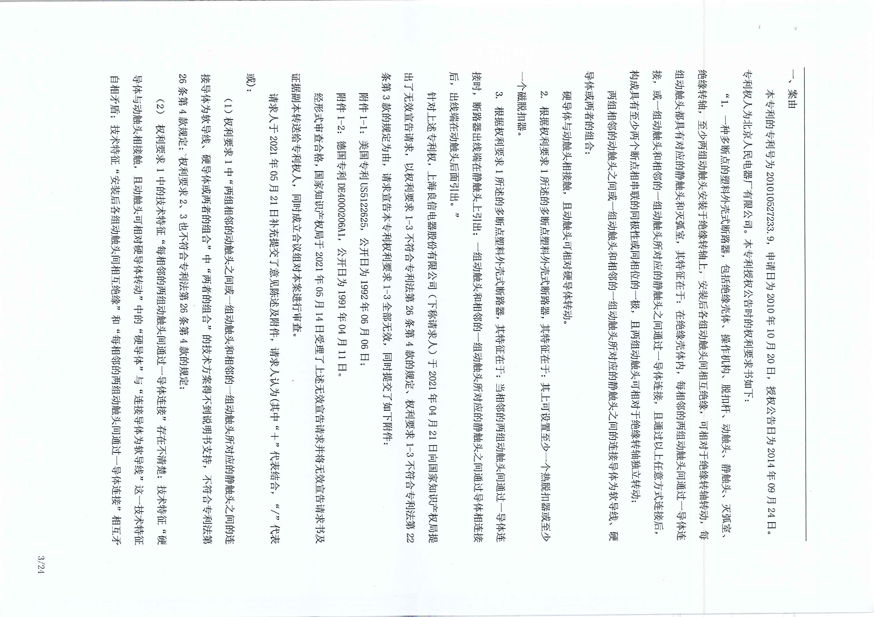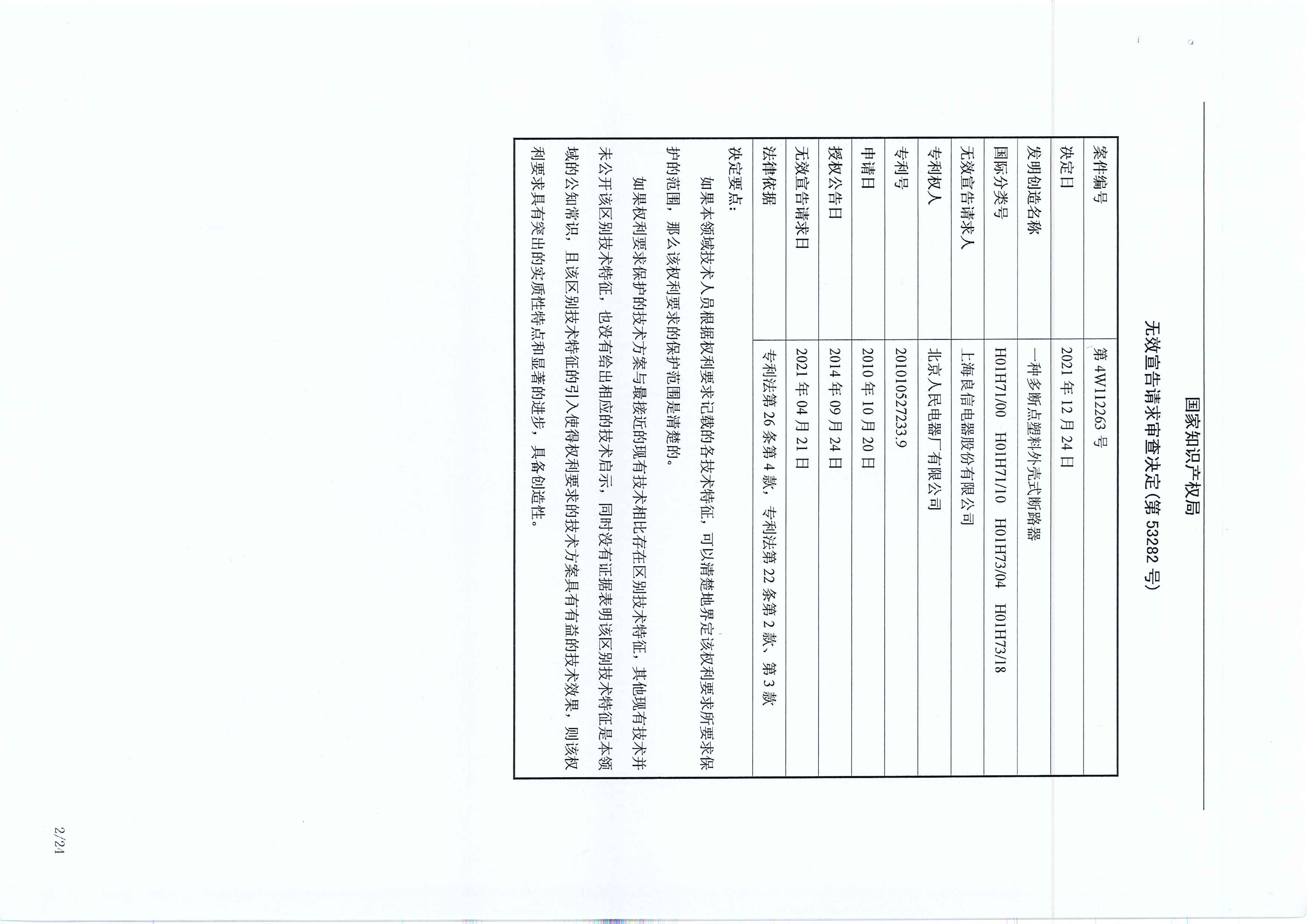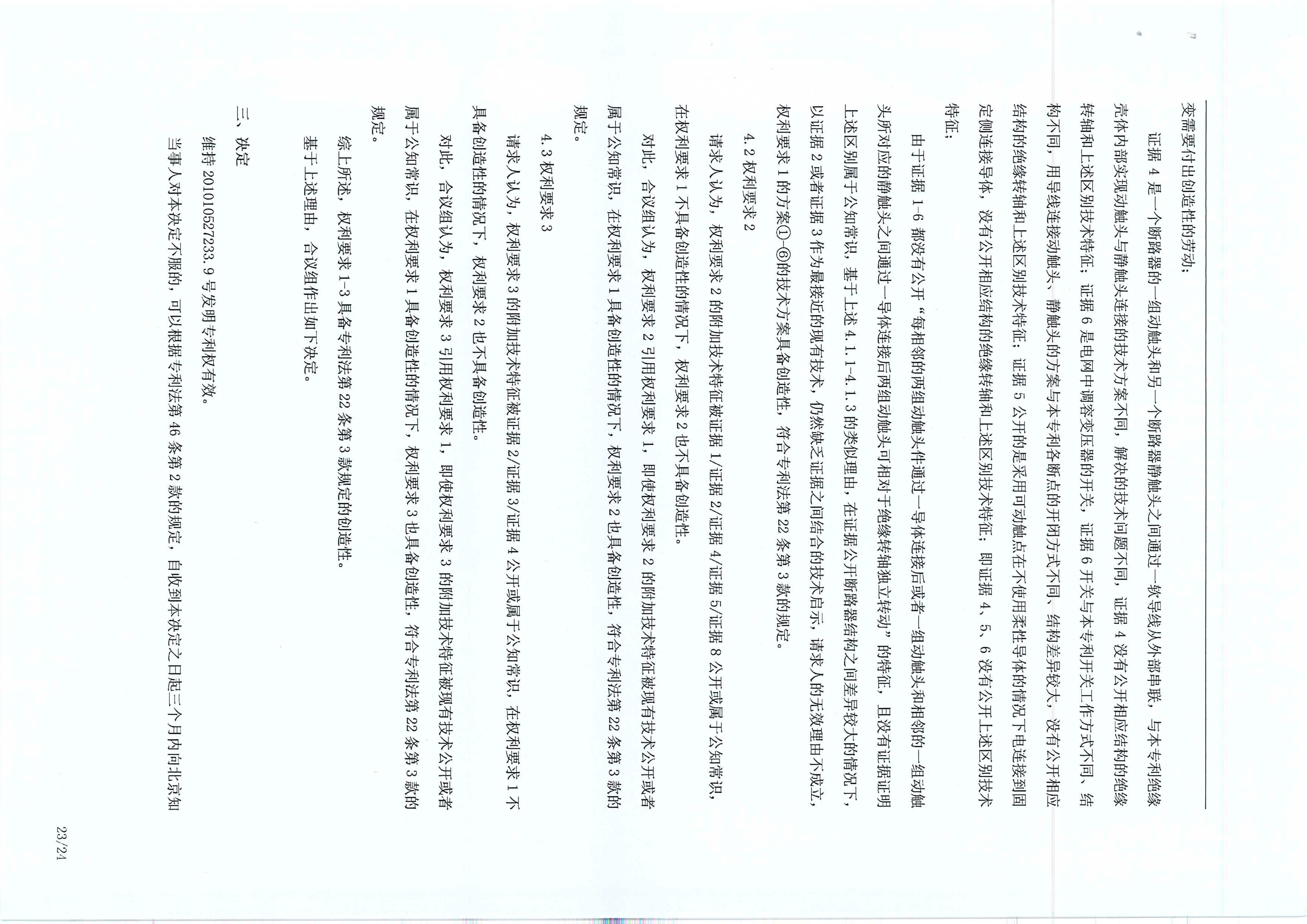 人民電器2010105272339無(wú)效宣告請(qǐng)求審查決定書(shū)-贏